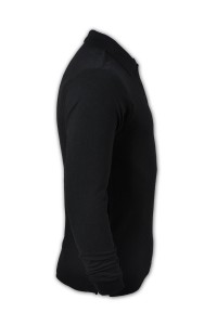 • SKLPS002 pure color plain colour black 007 long sleeved men' s Polo shirt 1AD01 online ordering supply long sleeved polo-shirts cotton 100% breathable polo made in Hk Hong Kong company supplier price side view