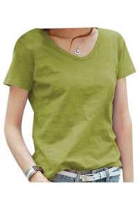 • SKT032 Design cotton loose short-sleeved T-shirt Manufacture V-neck net color short-sleeved T-shirt Supplier Bamboo cotton T-shirt 45 degree