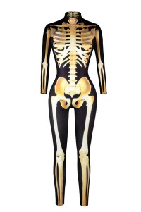 • SKTF021 Metal skeleton digital printed tights detail view-1